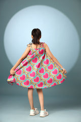 Radiate joy in our bold multicolor dress! Vibrant hues swirl in a playful pattern, perfect for spirited girls' fashion.